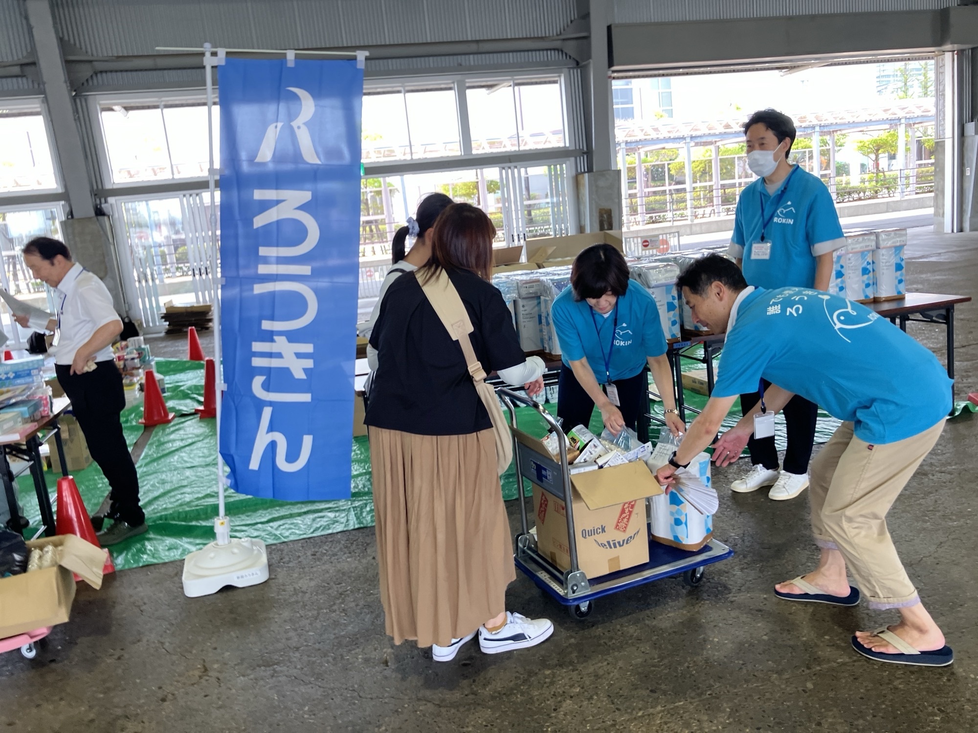 ろうきんブースでは、生活必需品であるティッシュボックスとトイレットペーパーを配付したほか、お子様連れの来場者向けに「じゃんけんイベント」を開催し、子どもたちとの交流を楽しみました。