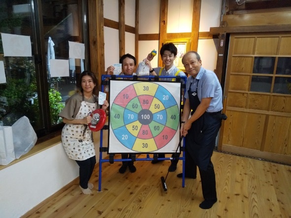 今年は8月22日に開催され、来場者に夕食のカレーをふるまった後、3種類のミニゲームを楽しんでもらいました。当支店からは4名の職員がスタッフとして参加し、食事の配膳係とゲームの案内係に分かれてそれぞれの職務を全うしました。