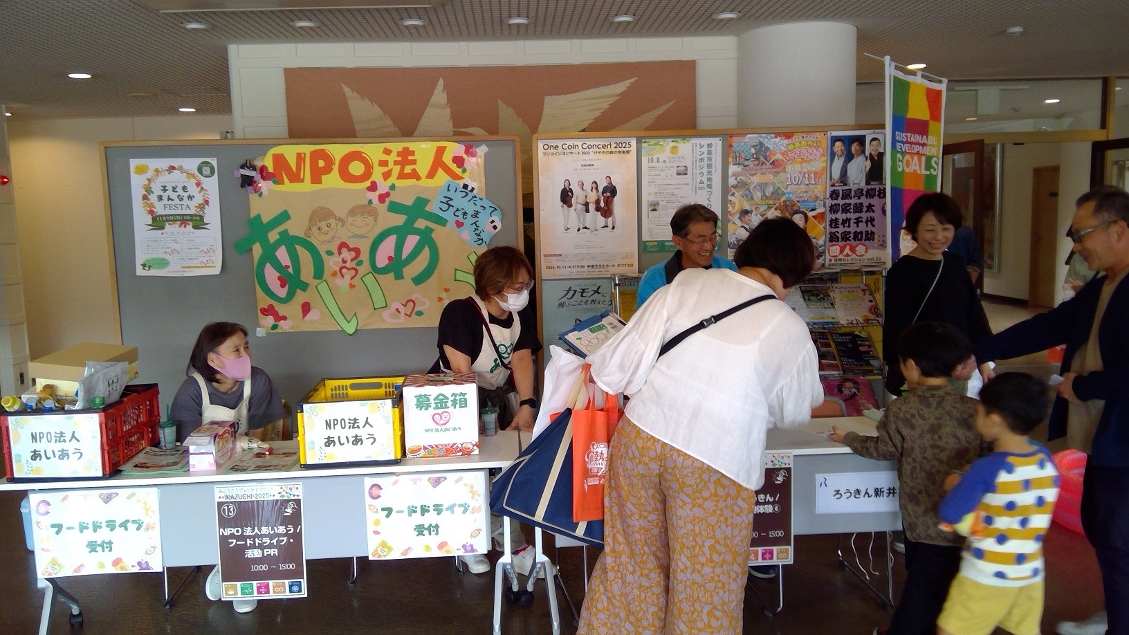 また、日頃より連携のあるNPO法人あいあう様も同イベントにフードドライブ活動で参加しており、当支店でも活動の周知とブースのお手伝いをあわせて行いました。