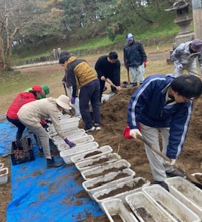 11月9日(日)に八幡・銀杏の会主催の「第23回チューリップ大作戦と八幡いも煮会」に参加しました。この活動は、チューリップのプランターづくりと、いも煮会の活動を通じて、土嚢設置訓練と炊き出し訓練の工程を学ぶ防災イベントを兼ねており、佐渡支店としても、2022年から継続参加しています。